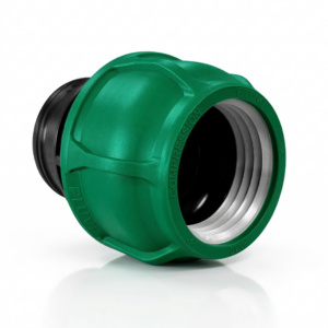 Funções: Conexão para transição de tubo PEAD/PEMD com junta tipo compressão para rosca fêmea padrão BSP.